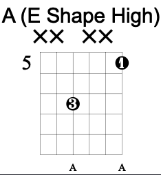 The octave shape found within the A chord shape is identical to the lower octave of the E chord. It is the ‘box’ shape that I earlier described as two frets up and two strings higher.